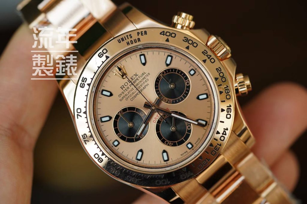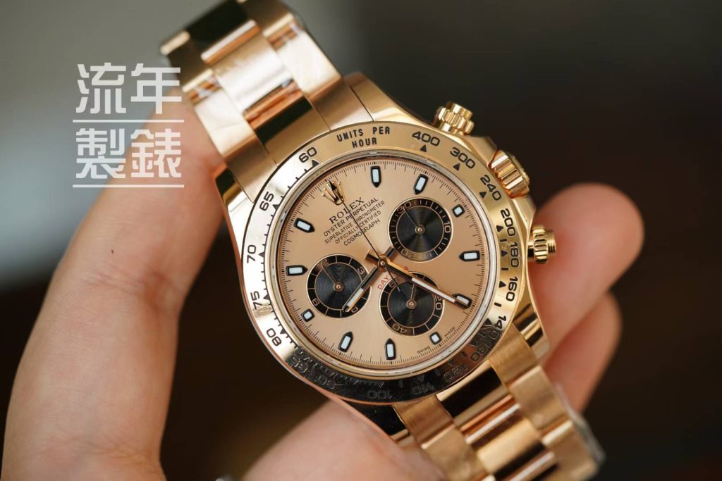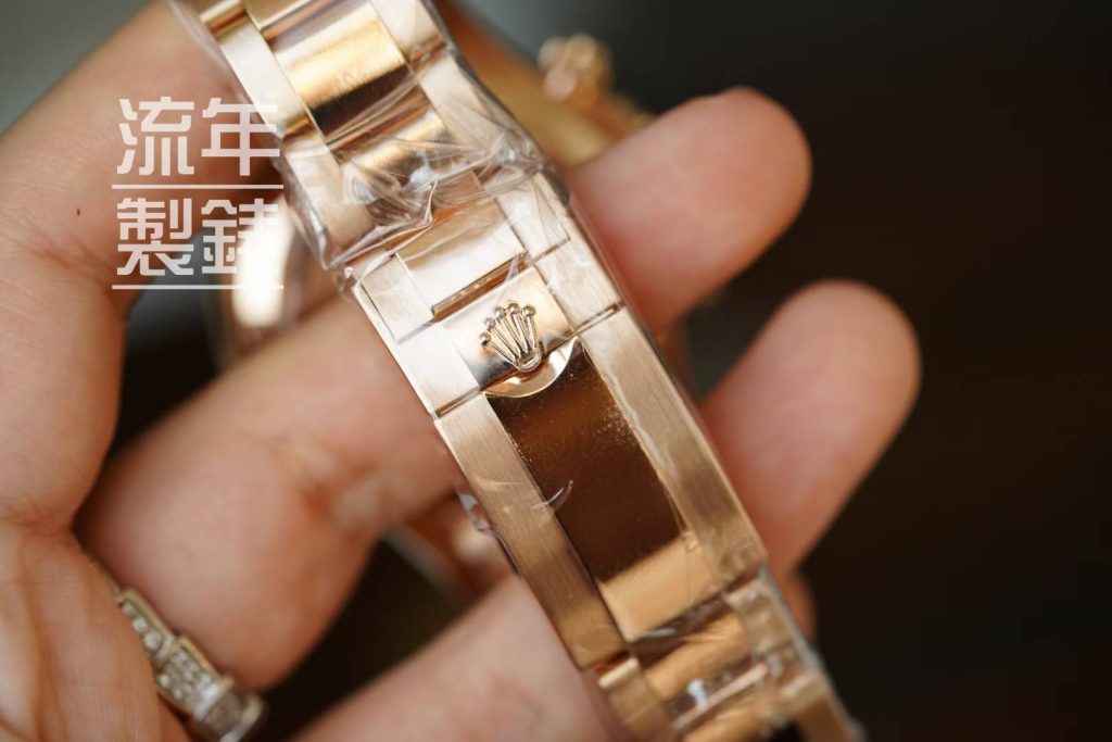 Genuine dial, hands, crystal, bezel, with an 18K gold case and bracelet custom-molded from genuine factory data.