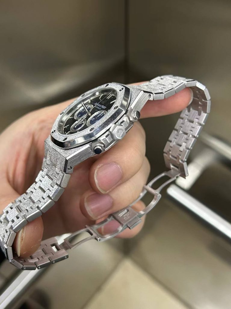 Audemars Pigute Royal Oak Chronograph 26331BC Frosted Gold Leave a reply Japan Limited Edition, top-tier hammered 18K gold case, with an upgraded 1185 movement.