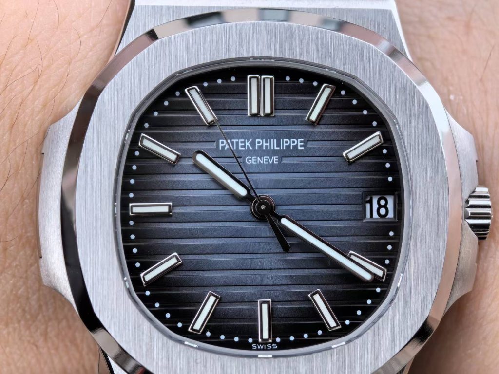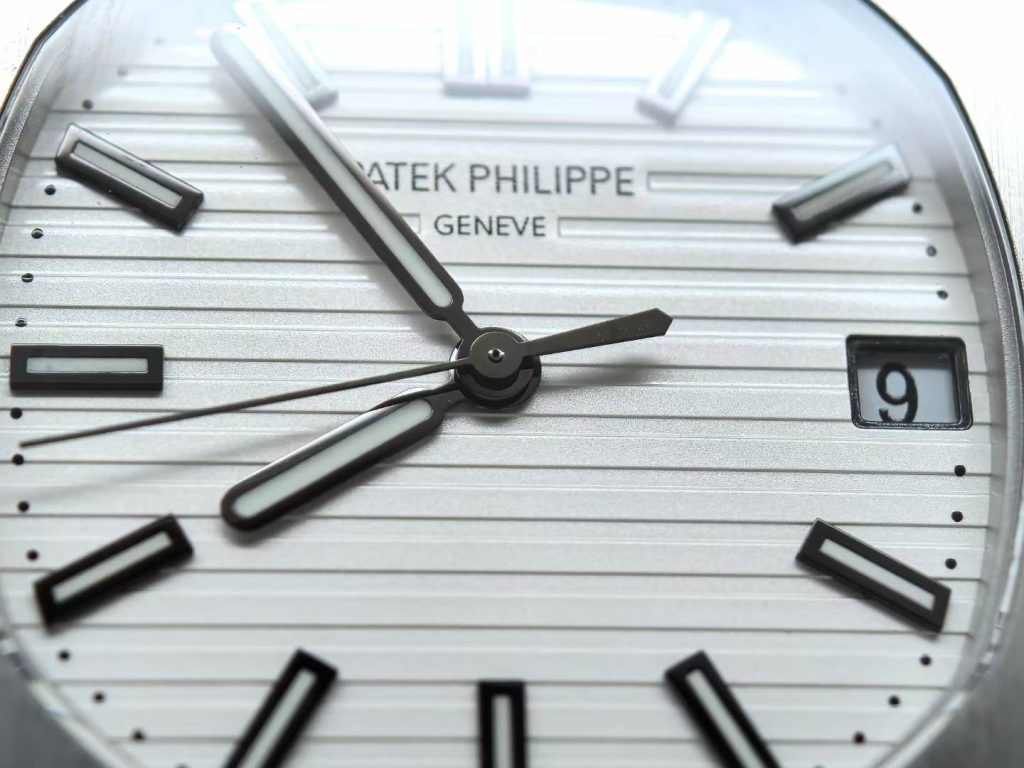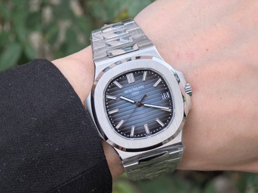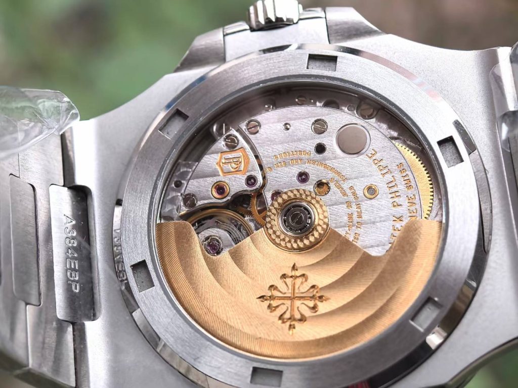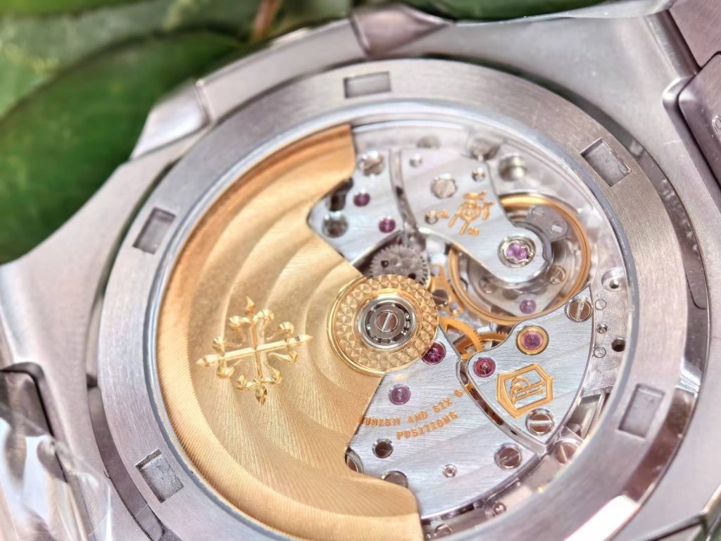 5711 green dial super full mod — custom-molded dial, hands, date wheel, with a 324 Free-Sprung gilt-engraved 18K gold rotor movement