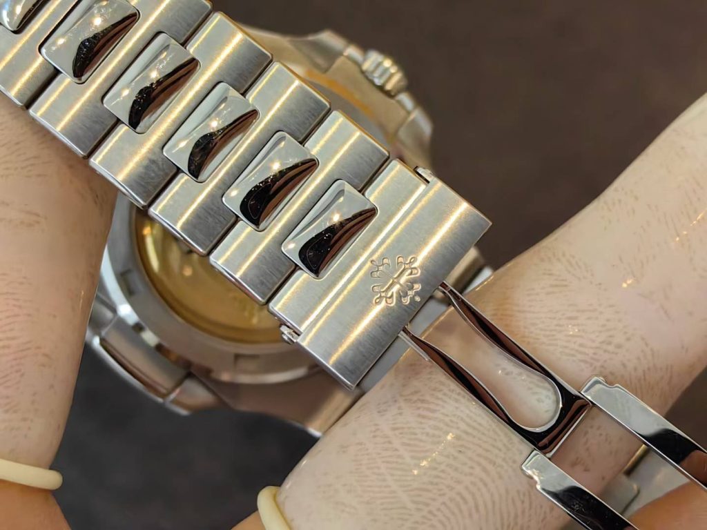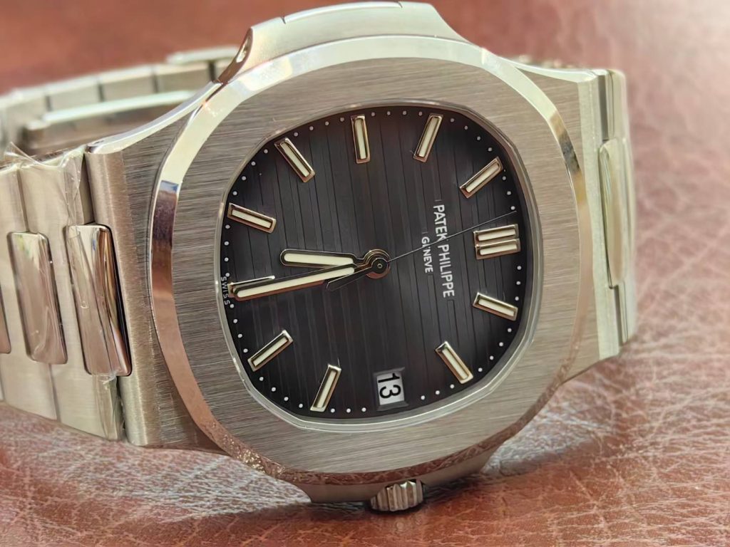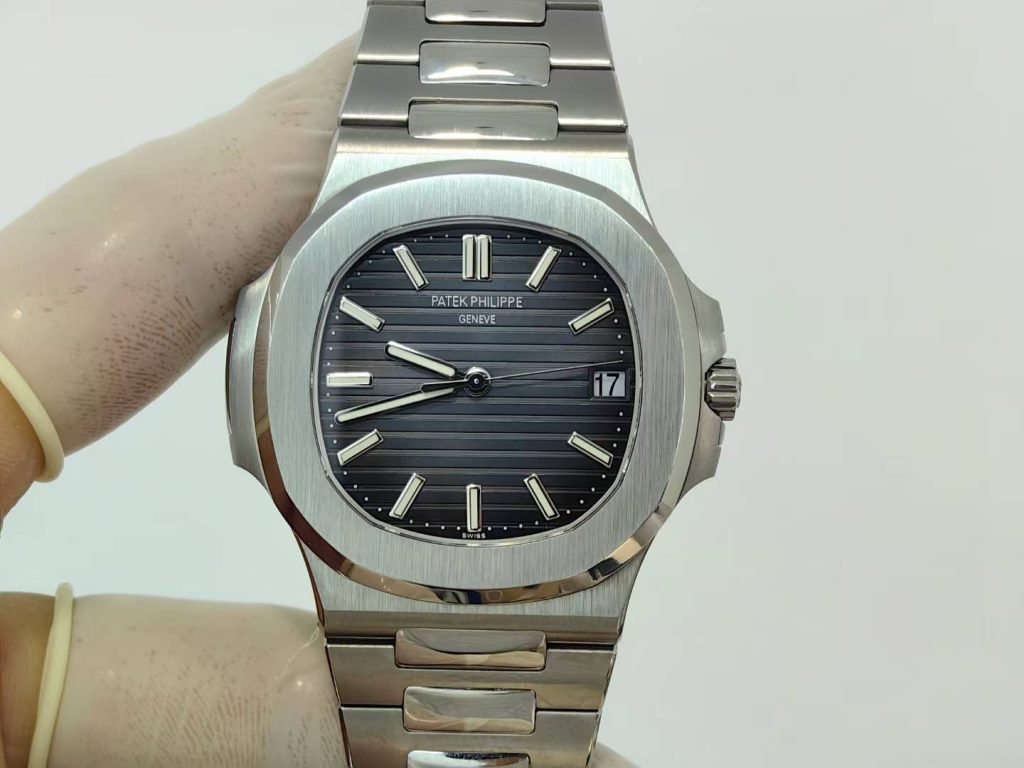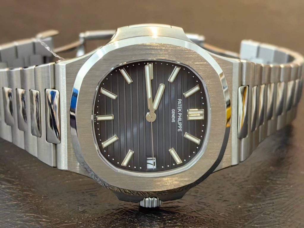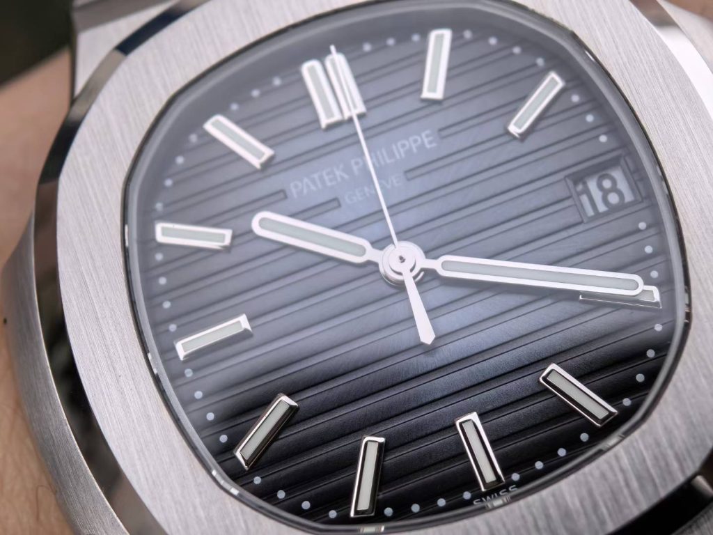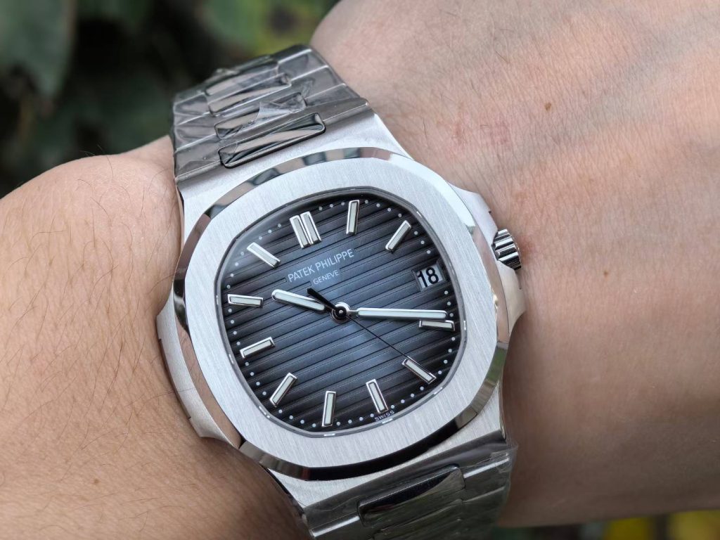 5711 green dial super full mod — custom-molded dial, hands, date wheel, with a 324 Free-Sprung gilt-engraved 18K gold rotor movement