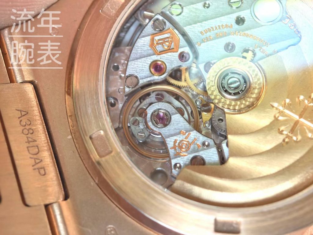 18K gold case and buckle, imported Swiss-printed dial and hands, with a free-sprung gilt-engraved 240 movement.