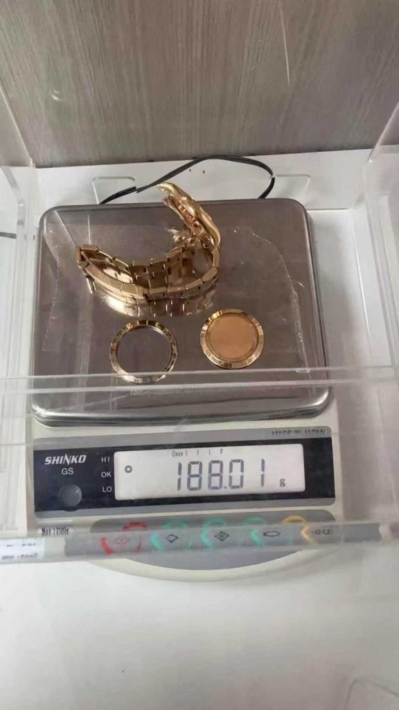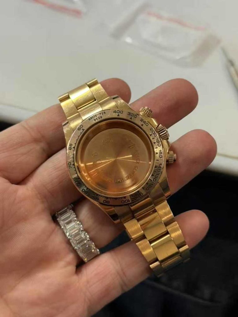Solid 18K yellow gold Daytona case.