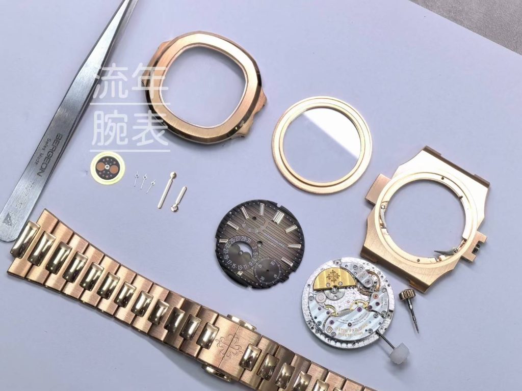A customer sent over a genuine 5226G case set — installing a custom Free-Sprung 324 movement with gold rotor for it.
